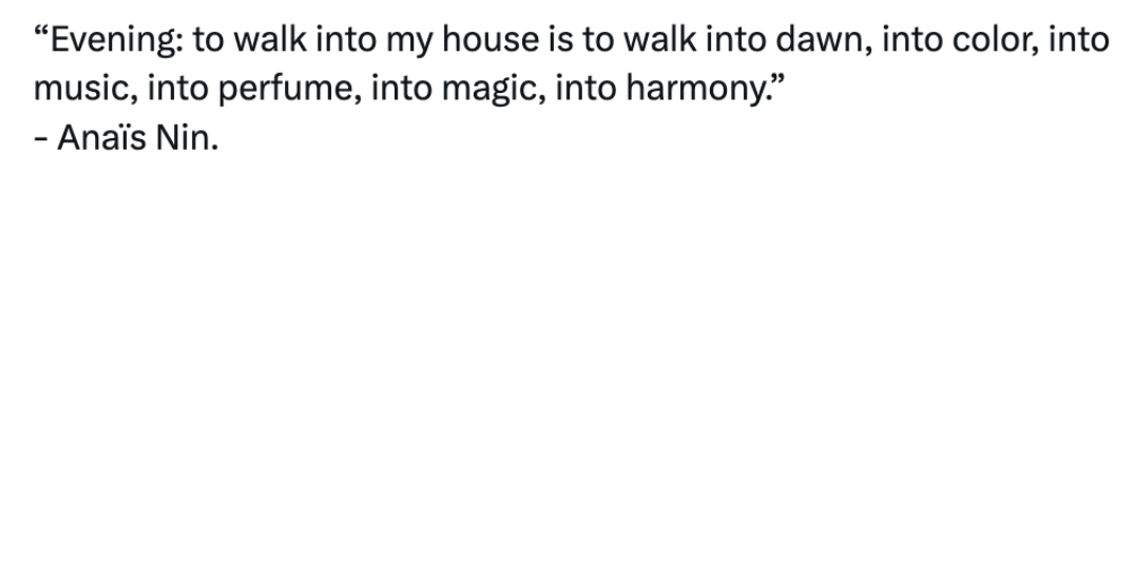Alongside her literary talent and erotic imagination, what we love about Nin is her insistence on aesthetic indulgences. Anaïs Nin is not the only writer to adorn herself and her home in order to better facilitate the creative process, but few writers have devoted so many words as she did to delighting every sense.