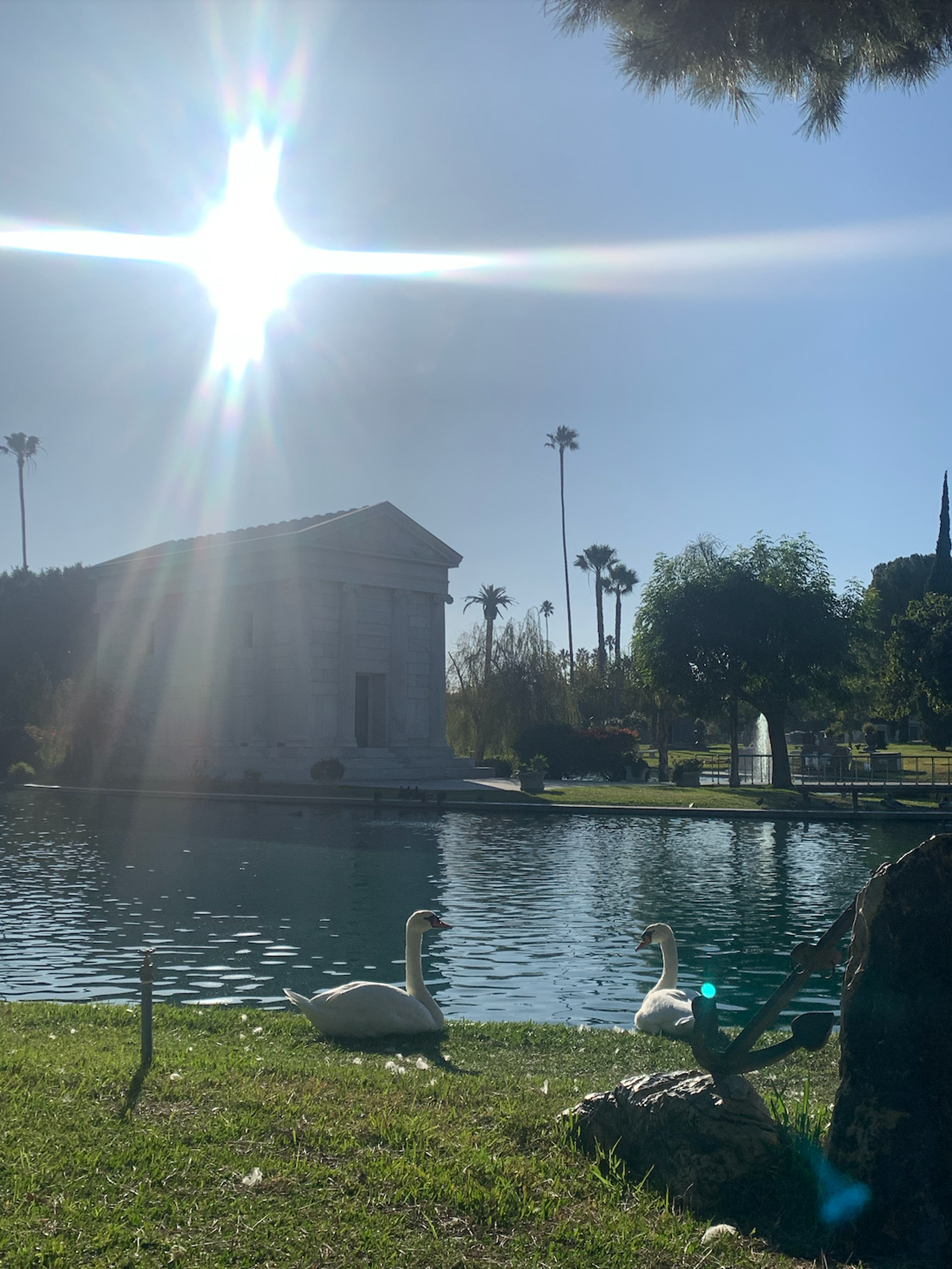 My two reading spots are emblematic of the dichotomy that is Los Angeles. If it's temperate: Hollywood Forever Cemetery, in the shade, by the swans. When it's too hot to be outside: the rotating bar at the brutalist Bonaventure Hotel downtown. It's a completely bewildering space, and I always leave with a revised position on whether the building is a condemnation or celebration of capitalist consumerism (read Fredric Jameson and Mike Davis on the building!).