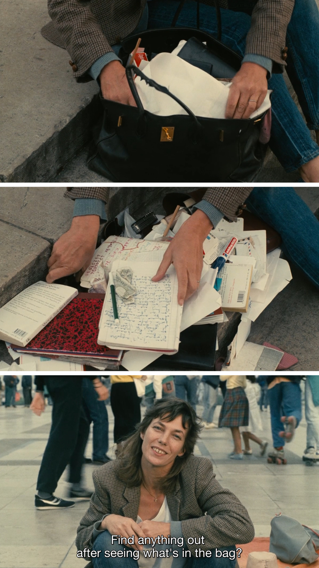 Throughout her life, Jane Birkin preferred abundance over neatness. Her signature packing style? Beautifully chaotic. One clip in Agnès Varda’s documentary film Jane B Par Agnes V in the late 1980s shows her taking great pride in emptying her wildly overflowing Hermes handbag onto Parisian steps, with the backdrop of the Eiffel tower. Here, she reveals a constellation of mementos and everyday items she refused to leave her home without.