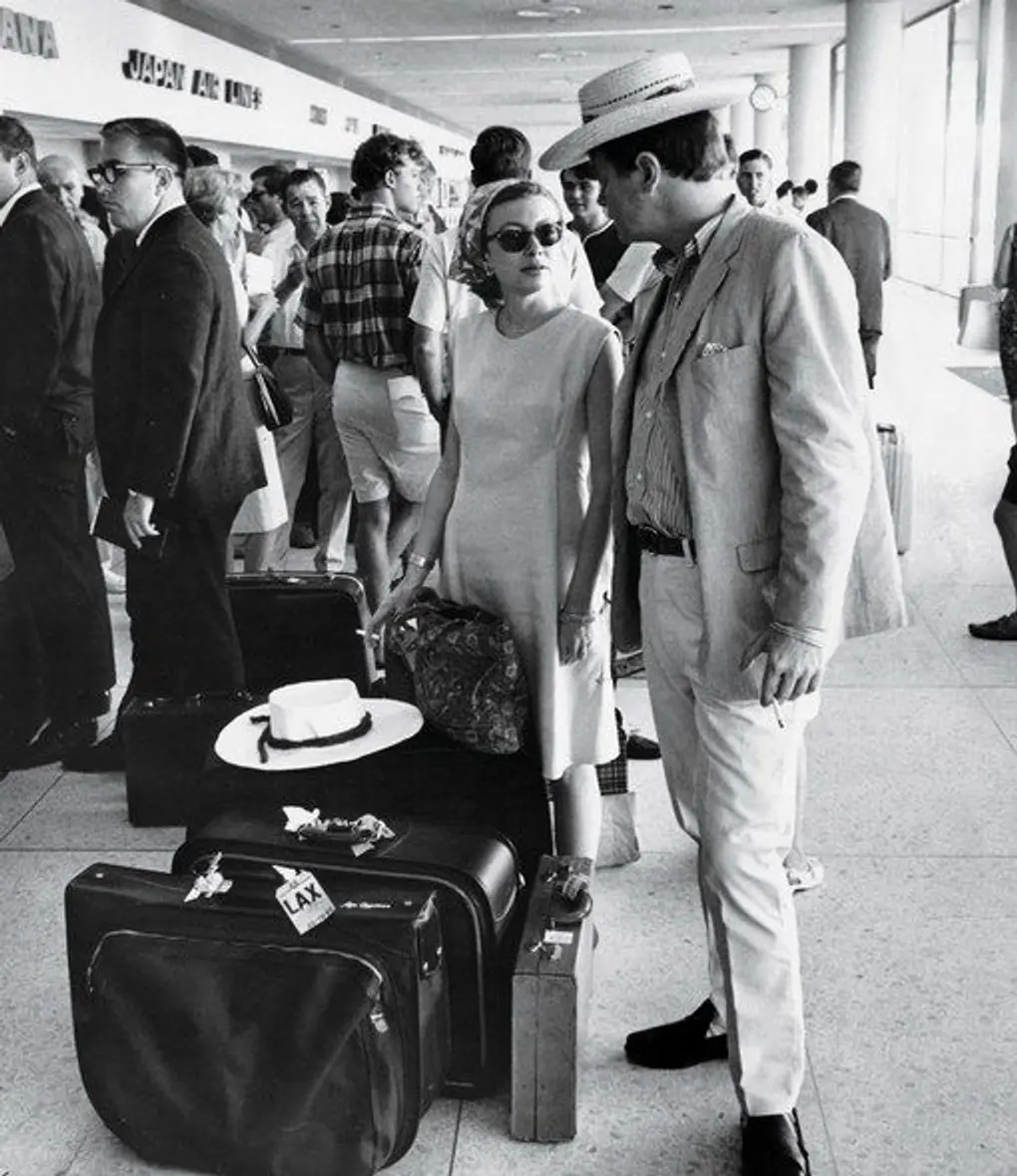 Joan Didion and John Gregory Dunne at LAX airport in 1966