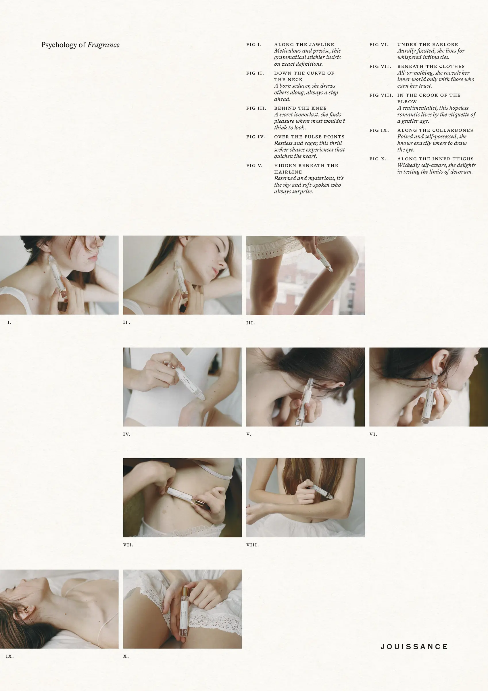 Are you a born seducer? A secret iconoclast? Or perhaps you’re more of a sentimentalist? Perfume placement is not unlike reading someone’s handwritten notes in the margins of their favourite book… It tells a story within a story. Whether traced along your collarbone, under earlobes or down the curve of your neck, think of our scent psychology (as featured in The Toe Rag’s eighth issue, currently available to purchase in our bookshop) as your guide to help you discover your sweet spot this springtime.
