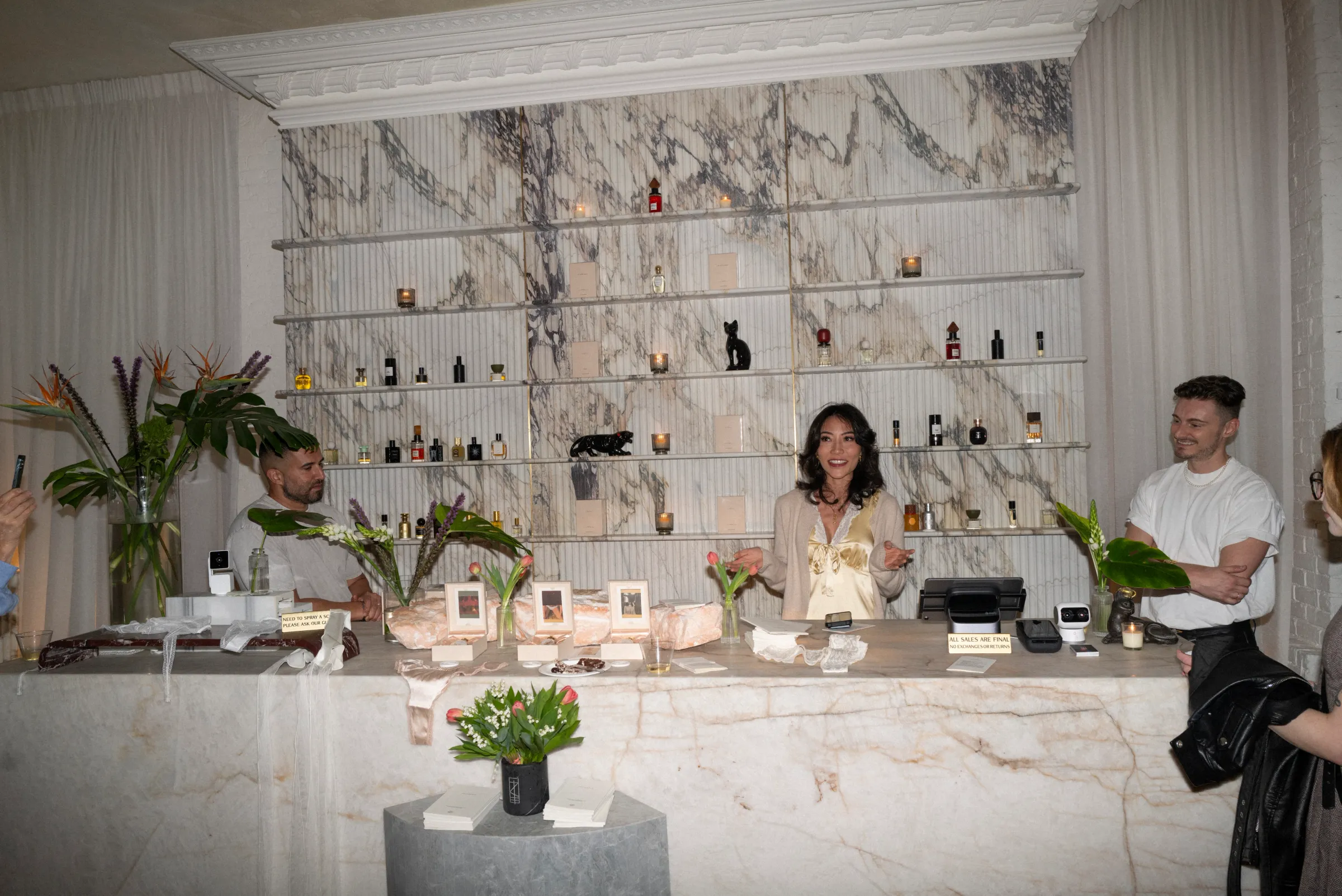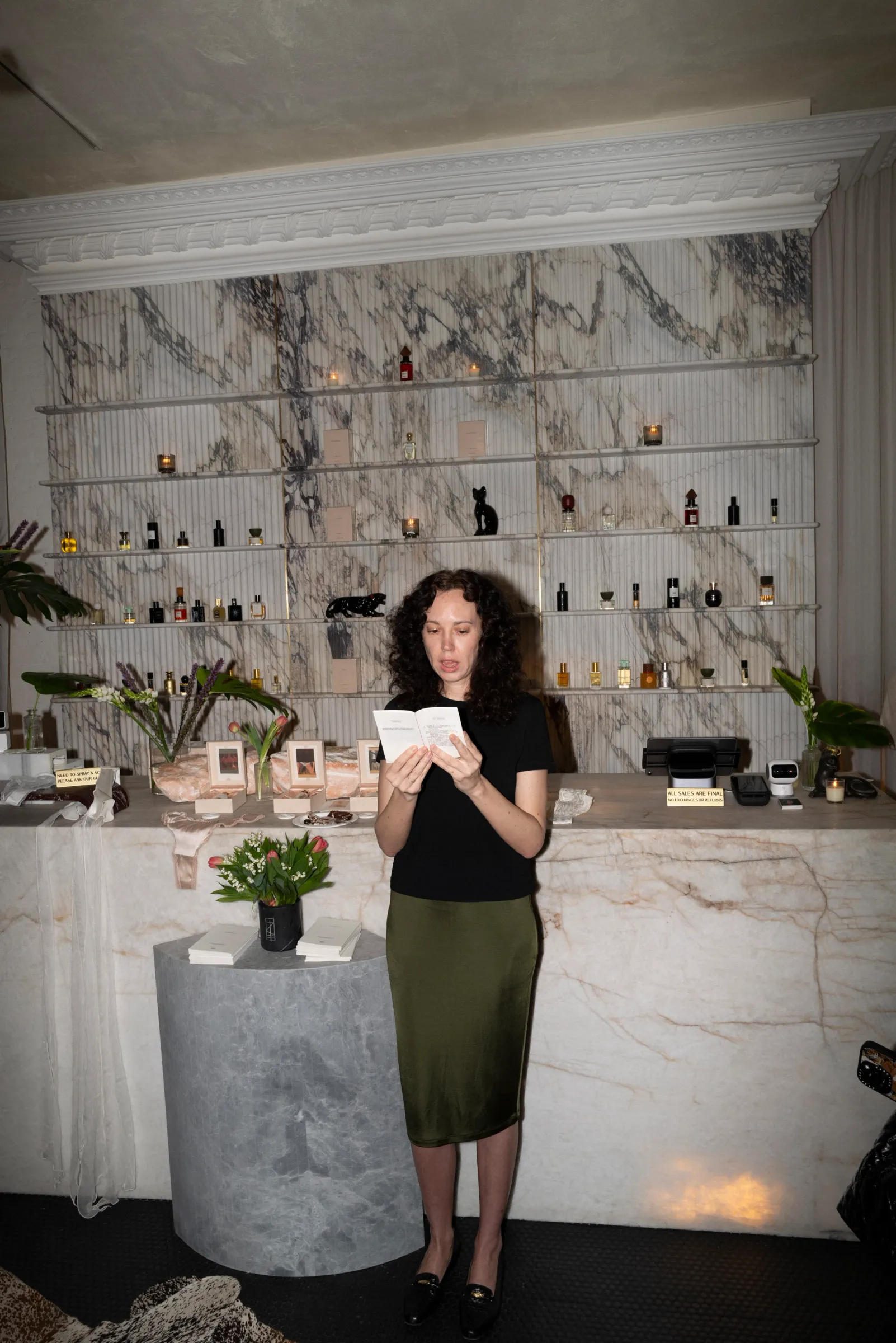 The evening featured a live reading by Natasha Stagg, author of our ongoing short story series The Collector, alongside exquisite cakes and snacks by Ecstasy Cookbook. Our fragrances were displayed alongside beautiful handmade silk lingerie from our Parisian sister brand, Mavelle.