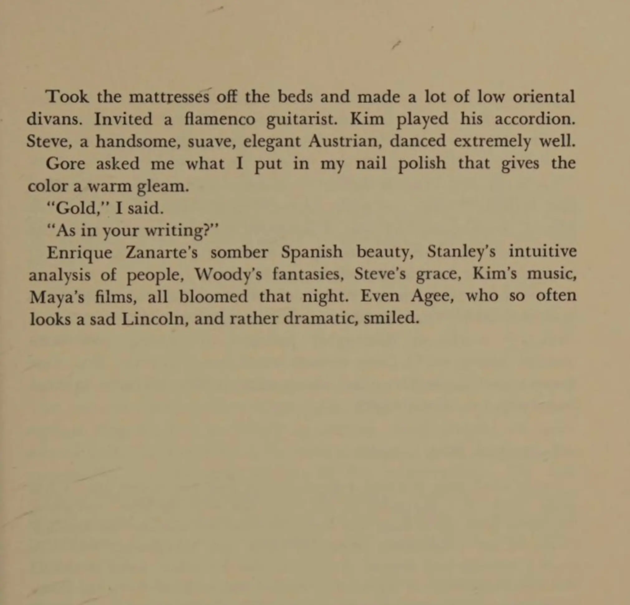 Be sure to extend invites to your most gifted and creative friends—you never know whose name will go down in history. Anaïs Nin’s diaries read like a roll call of artistic brilliance: she partied with Gore Vidal, André Breton, Maya Deren, and Peggy Guggenheim. But her best description is of architect Frederick Kiesler "kissing ladies hands. But as he is four feet tall, it makes a woman feel like the Statue of Liberty."