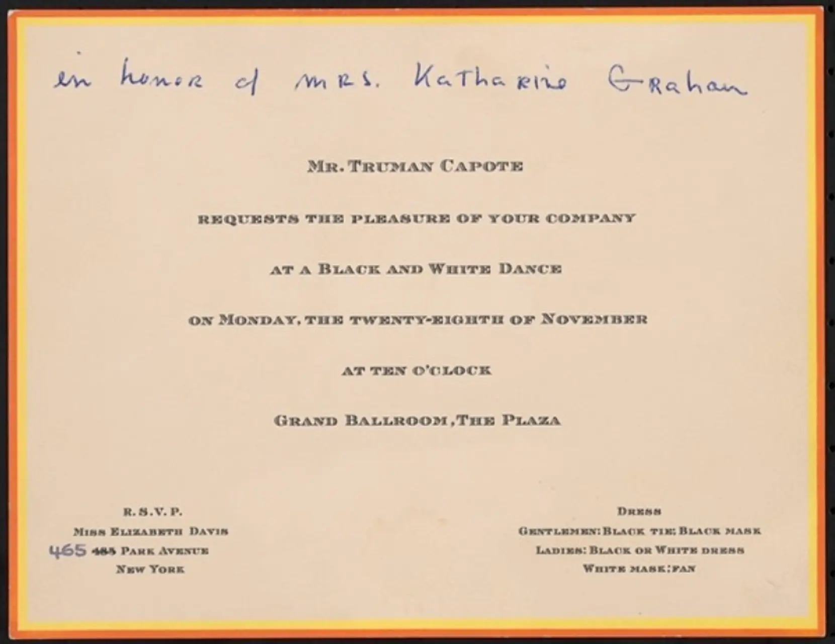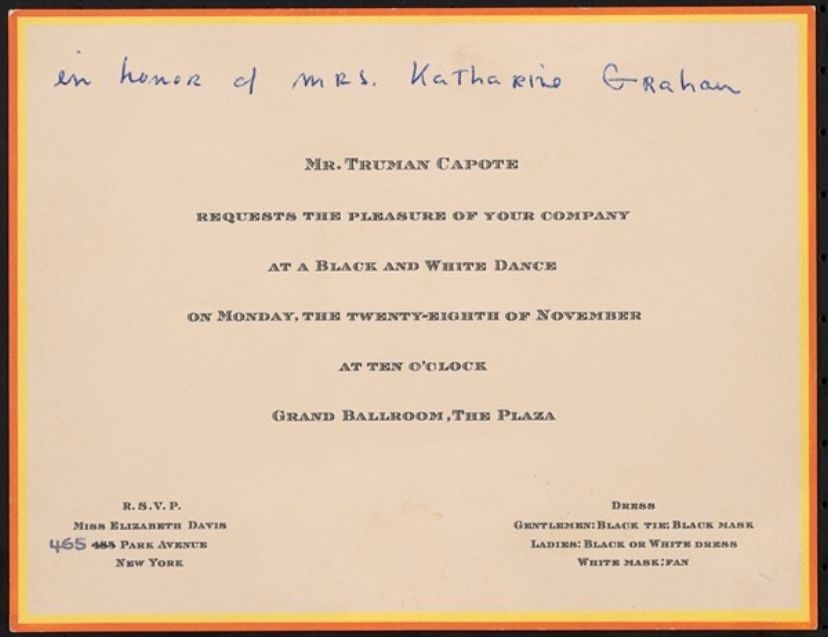 The invitation for Truman Capote's Black and White Ball.