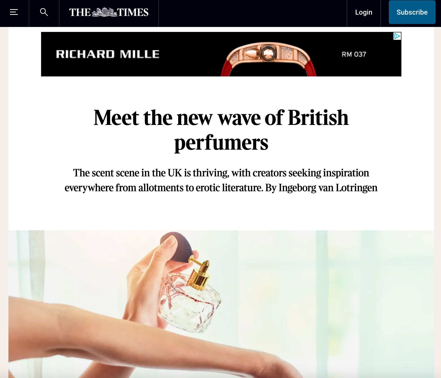 I’m glad to have been introduced to Jouissance — a UK brand that aims to explore female-authored sexuality. Les Cahiers Secrets is a charming take on sweet, powdery iris — all gentle blushes on white cheeks — but the real standout is La Bague D’Or. A veritable Madame De Merteuil beckoning you to an orgy in a velvet-lined boudoir, it is both filthy and regal, pushing out its central rose note with buxom insistence. Imagine a lecherous Portrait Of A Lady and you’ll get a sense of how it operates.