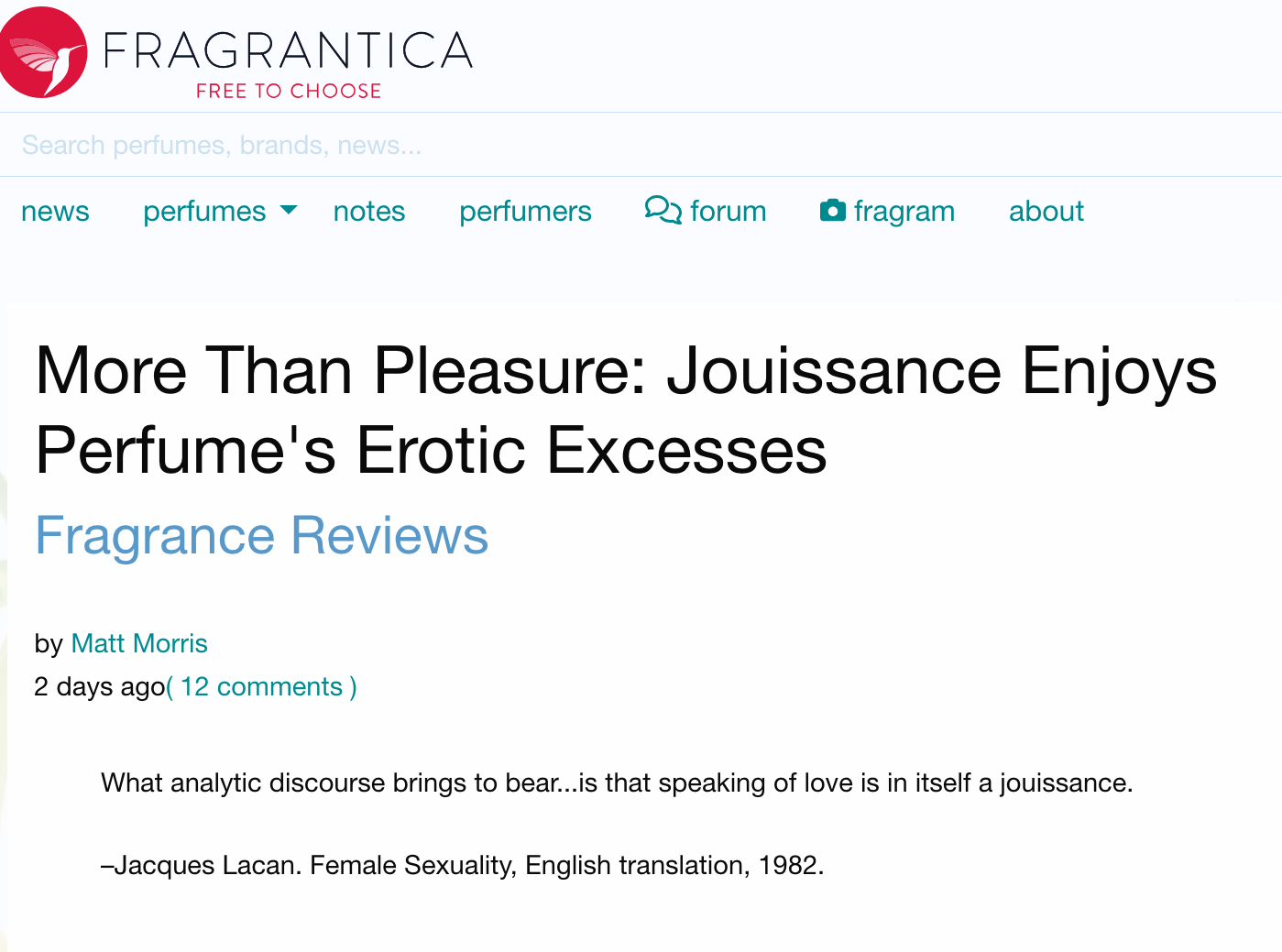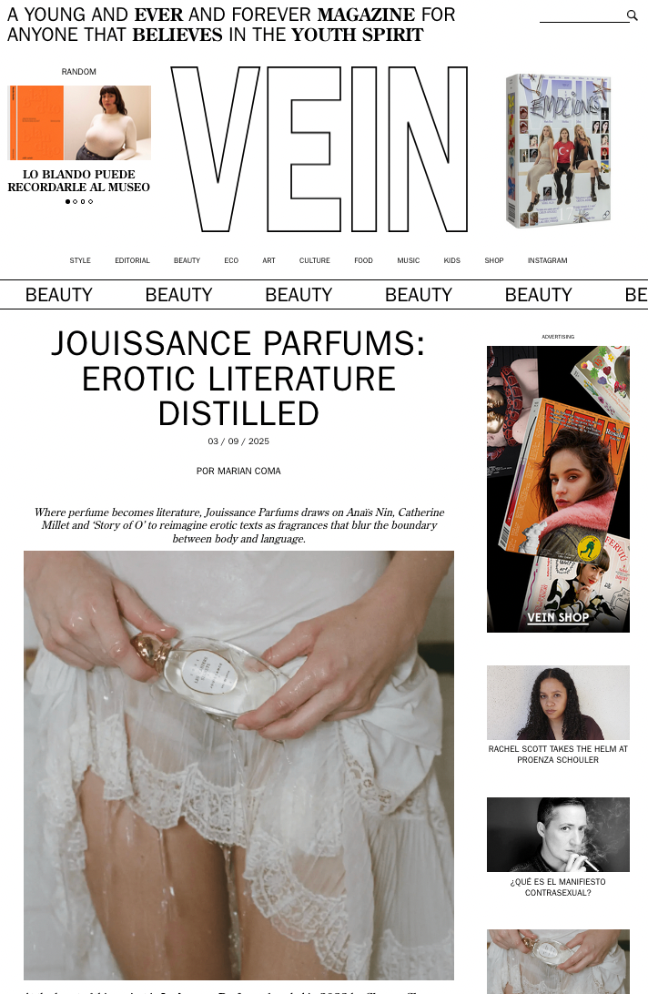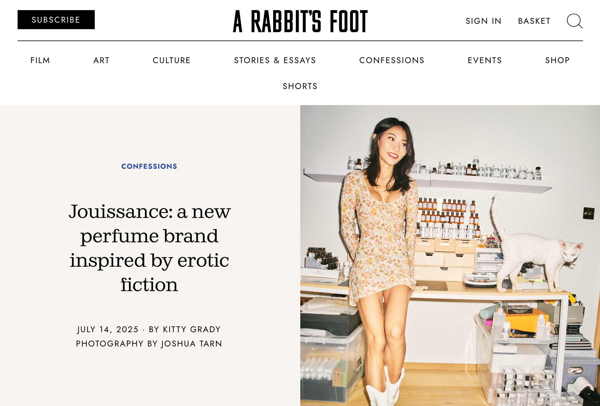 “The mission of Jouissance is to foster a vibrant community where artists can freely explore their erotic imaginations and exchange creative inspirations, united by a shared love of perfume, art, literature, and cinema.”