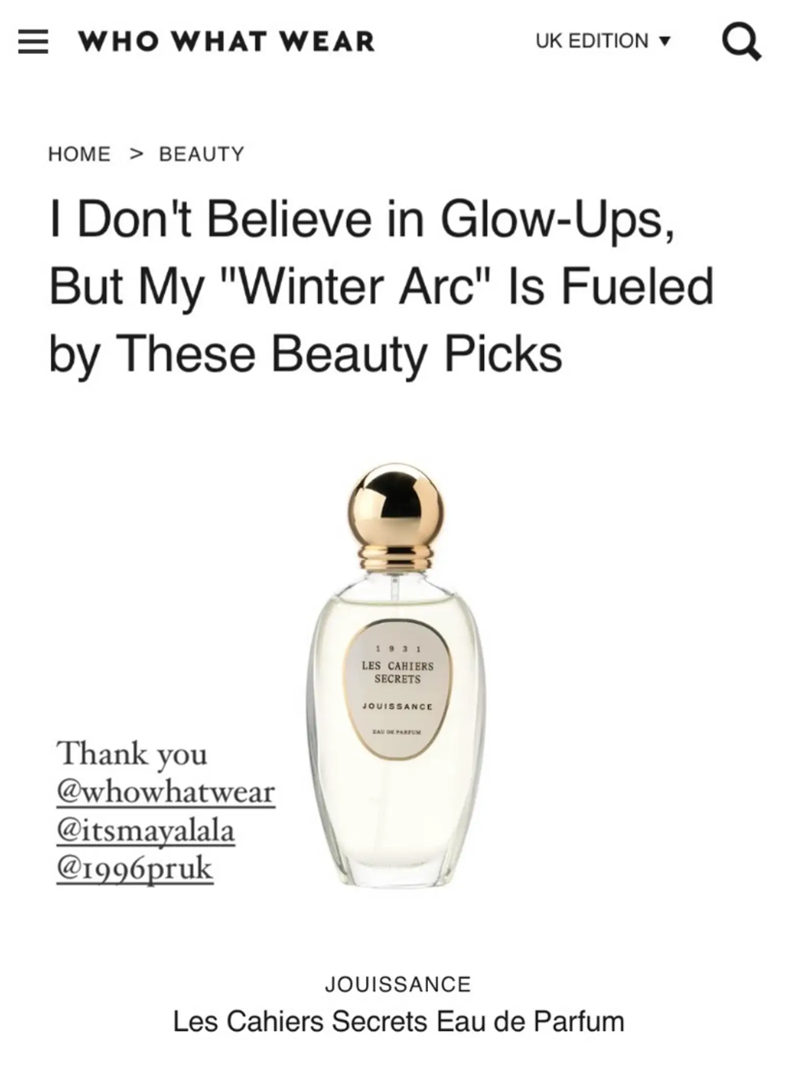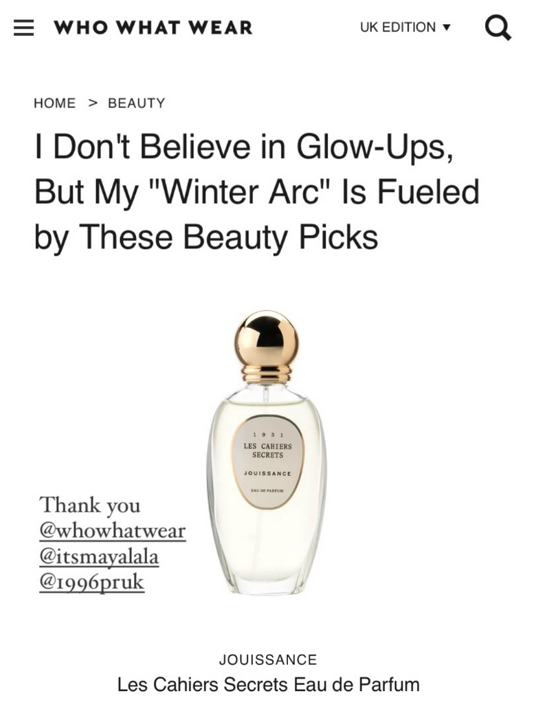 One of my biggest goals of 2024 was to open up my fragrance collection to scent profiles that still smell like me but with something unexpected sprinkled in. The Les Cahiers Secrets Eau de Parfum by Jouissance hits the nail right on the head with a second skin–like base backed by warm spices. To me, the star note has to be the delicate and sweet fresh-cut lilies.