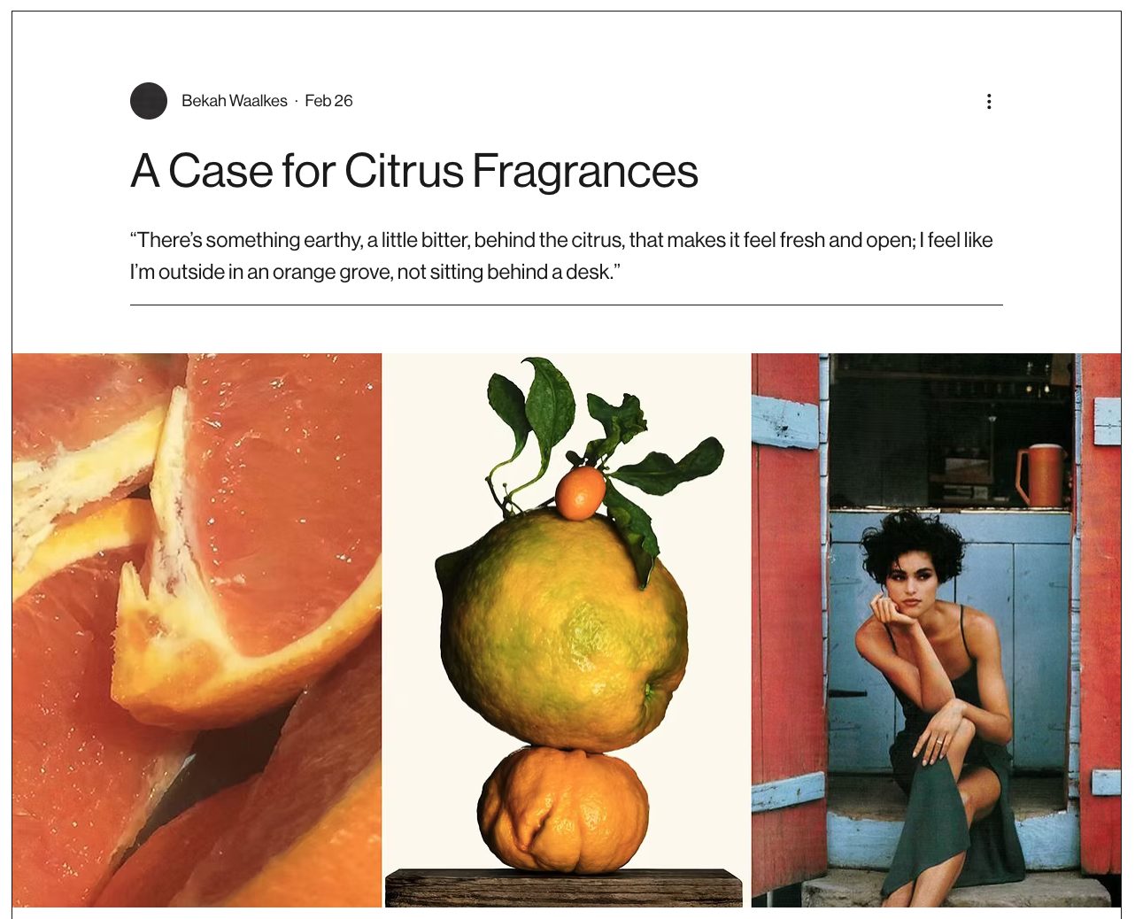 “A good citrus perfume is all about balance, as while citrus notes helps to lift the composition of a fragrance and impart freshness, brightness and clarity, their staying power can be fleeting,” explains Cherry Cheng, founder of fragrance brand Joussiance. “However, paired with natural notes like neroli, orange blossom, petitgrain…soft woods or light musks, you can round out a citrus scent and help the citrus to shine for longer.”