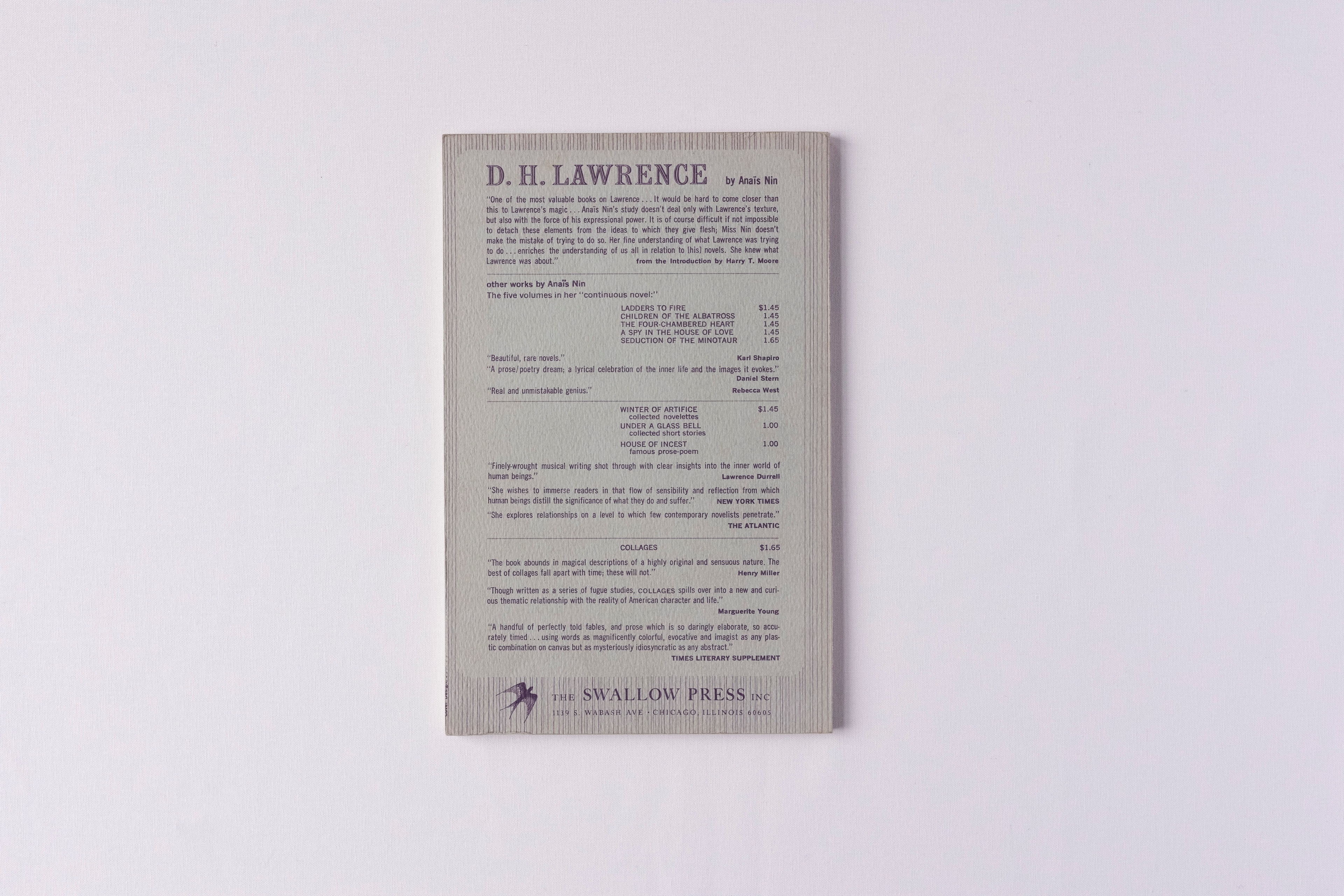 This copy is the Swallow Press paperback, third printing, from the same small press that would later publish much of Nin’s work.