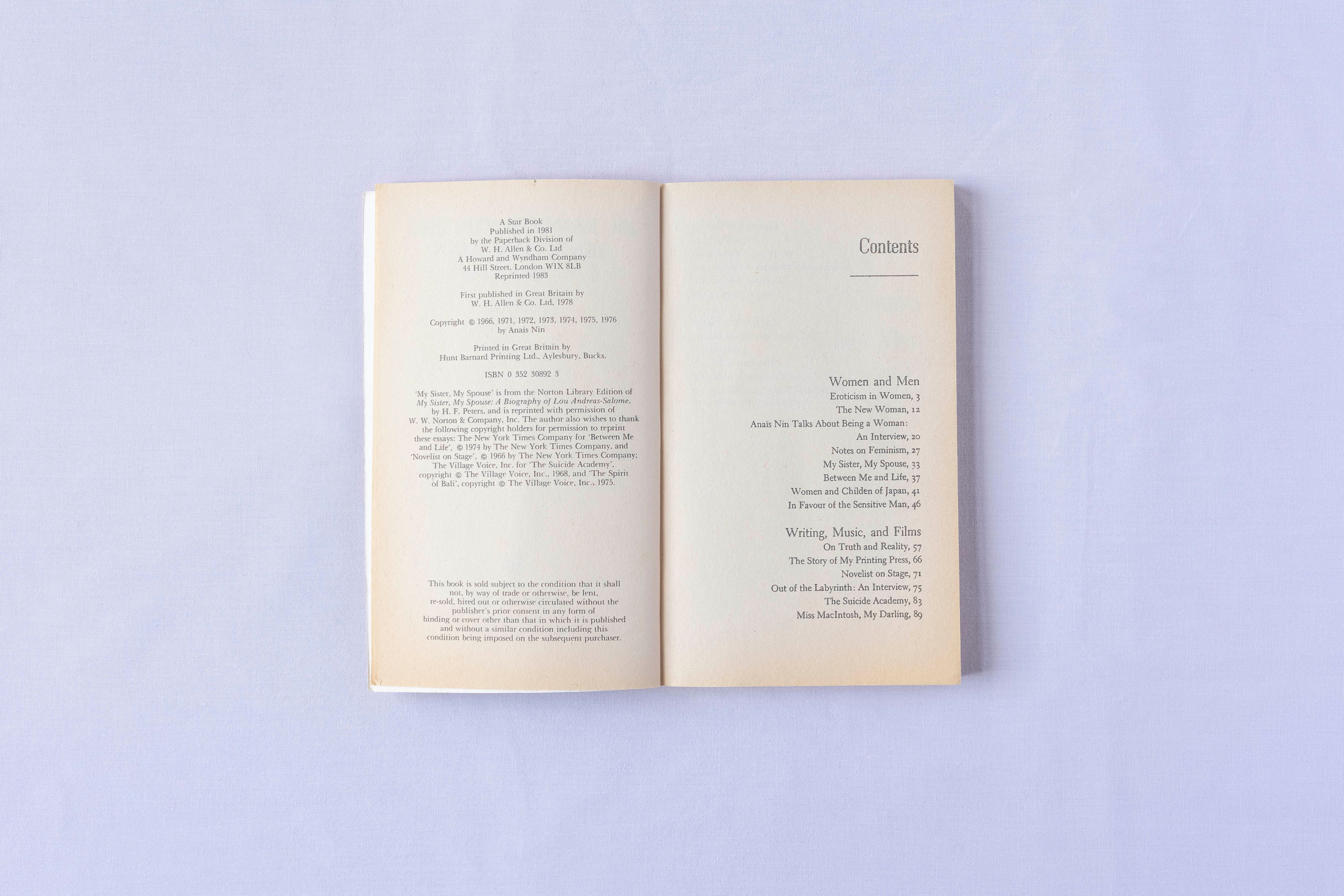 You may already love Anaïs Nin for her erotic tales and intimate diaries, but her writing can also indulge your scholarly side. In Favour of the Sensitive Man gathers 20 essays, lectures and interviews, from Eroticism in Women to the story of her own printing press. It was published late in Nin’s life. Divided into three sections – ‘Women and Men’, ‘Writing, Music, and Films’, and ‘Enchanted Places’ – it’s the perfect introduction to Nin’s academic voice.