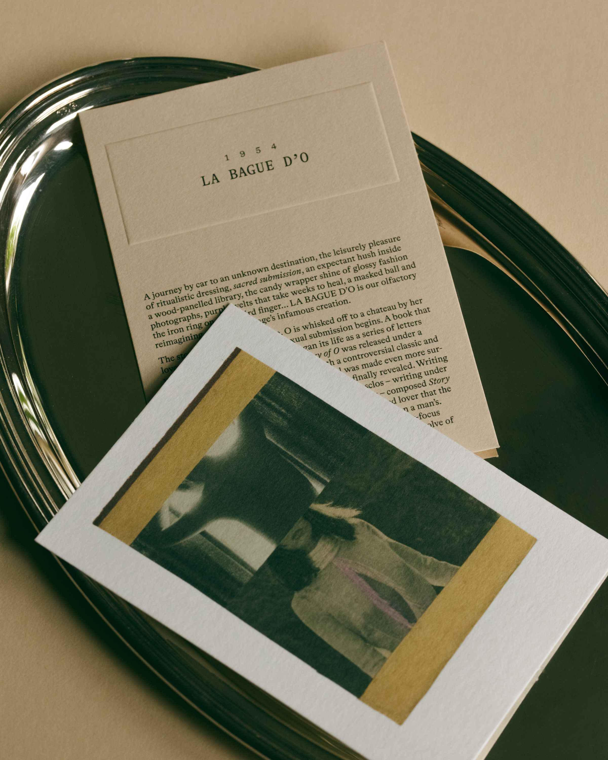 A journey by car to an unknown destination, the leisurely pleasure of ritualistic dressing, sacred submission, the candy wrapper shine of glossy fashion photographs, purple welts that take weeks to heal, a masked ball and the iron ring on your third finger... La Bague d'O is our olfactory reimagining of Pauline Réage’s infamous creation.