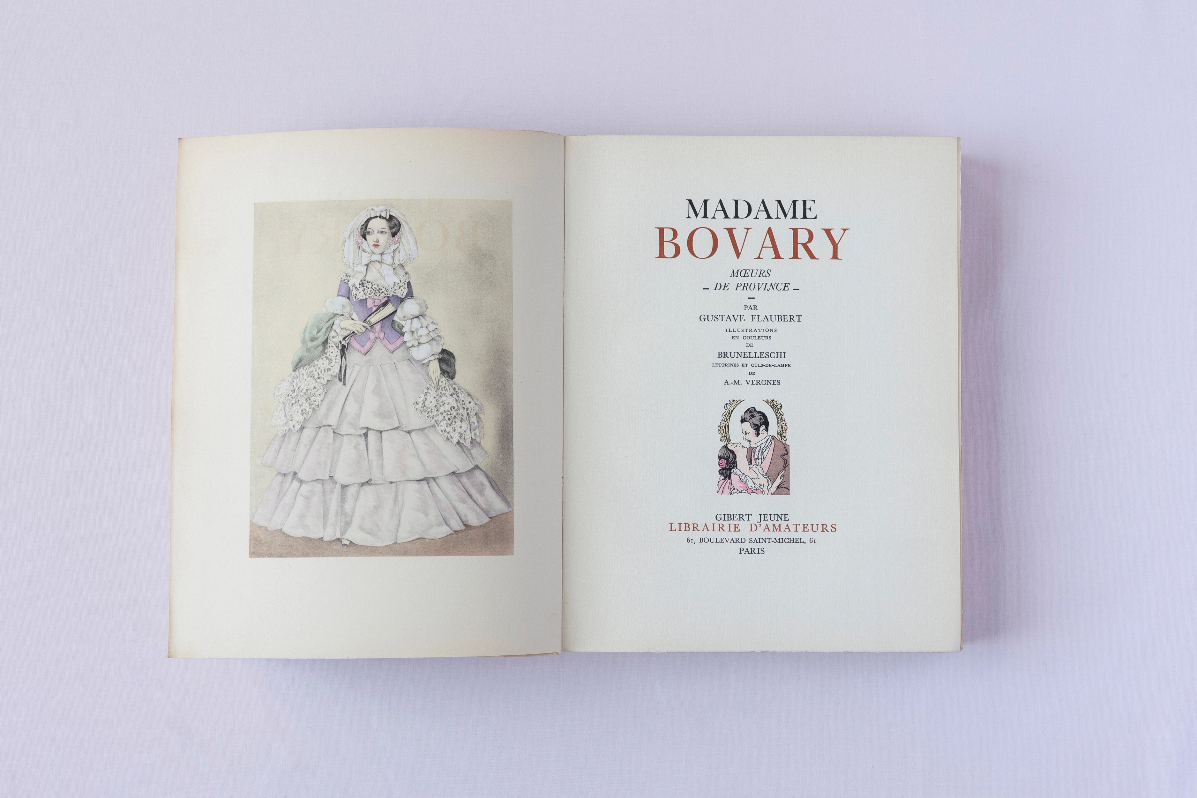 The Librairie d’Amateurs series of the 1950s from Gibert Jeune gathered some of France’s most cherished classics into elegant, limited-edition grand in‑4 broché (large paperback) volumes. Titles included Seingalt's Mémoires de Casanova and Voltaire’s Candide, all accompanied by illustrations from celebrated artists. Among them, Flaubert’s Madame Bovary stands as the crown jewel of the Librairie d’Amateurs series, pairing one of the most enduring novels of the 19th century with Umberto Brunelleschi’s stylish, and erotic theatrical plates.