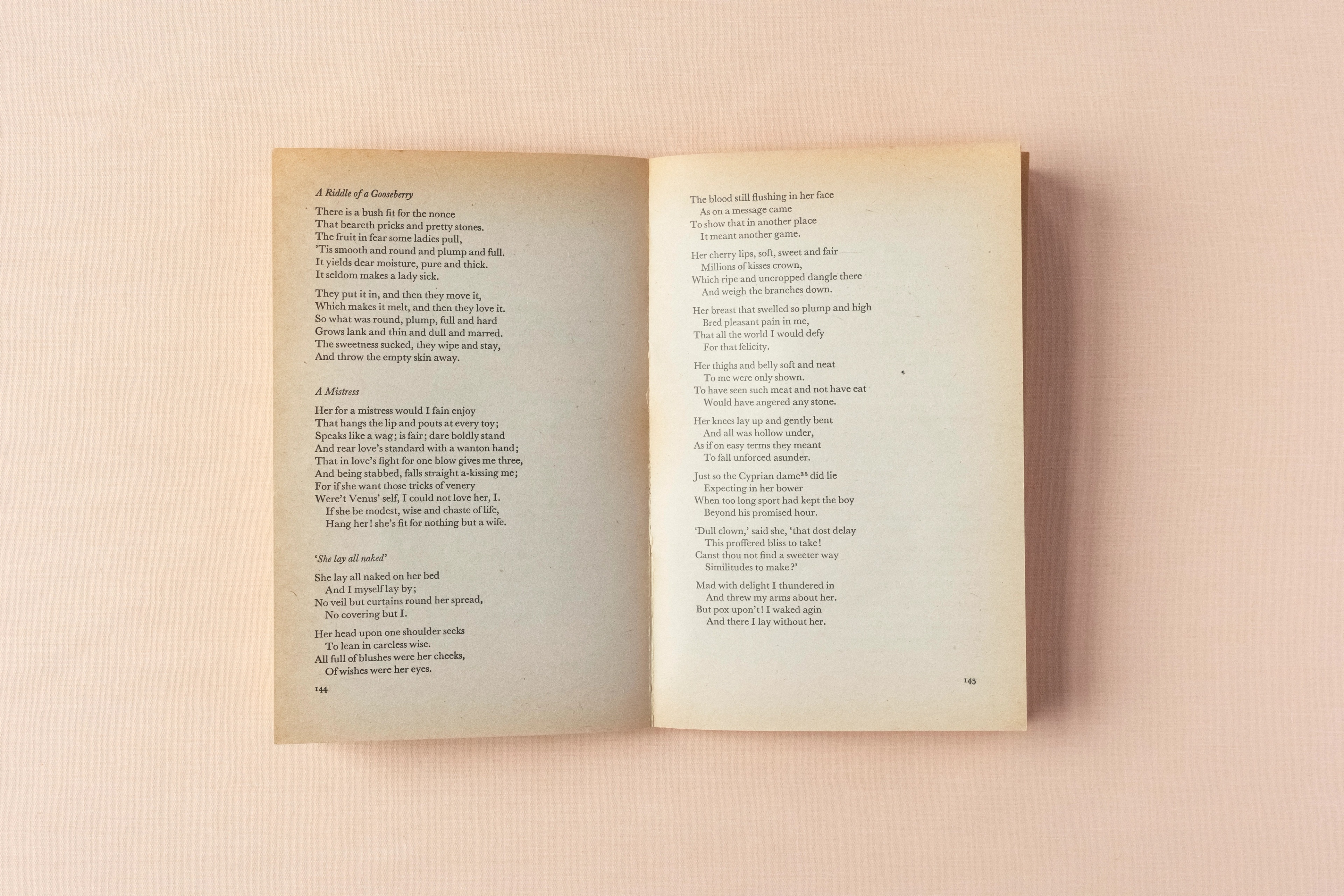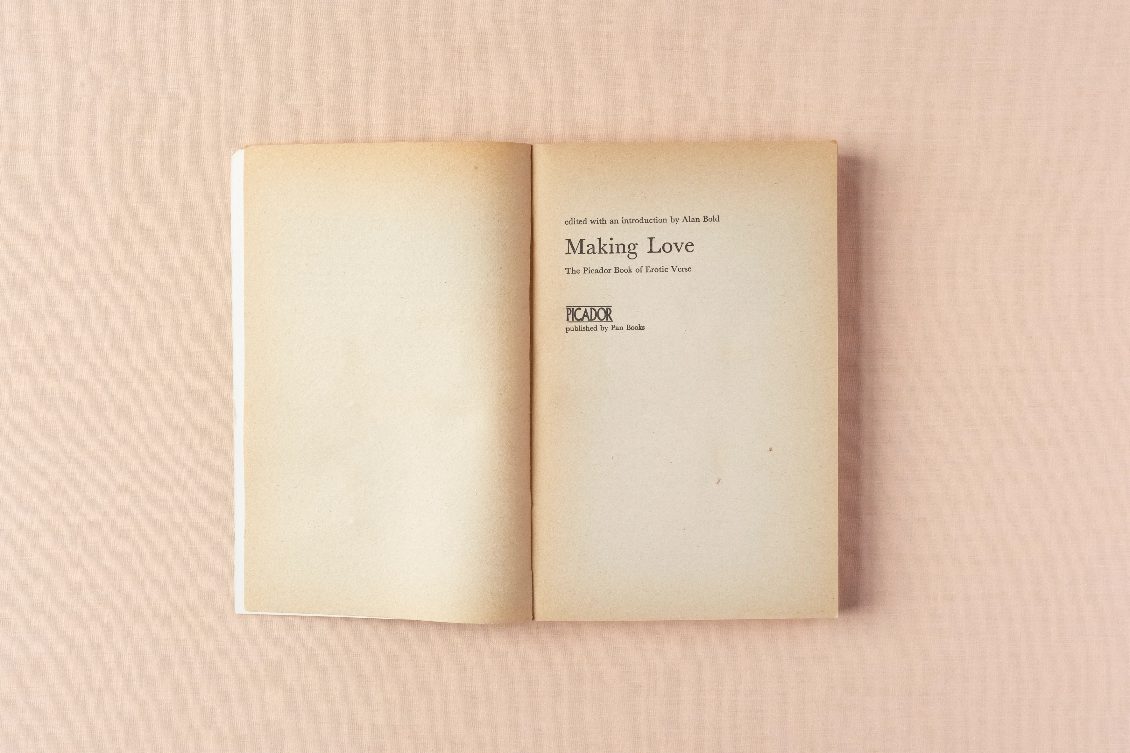 Making Love: The Picador Book of Erotic Verse gathers centuries of erotic poetry into one volume, from Classical fragments and medieval bawdiness to Restoration wit and 20th-century confession – a standard late-seventies literary erotic pick 'n' mix. Inside, the selection moves between the literary, the bawdy, and the frankly filthy.