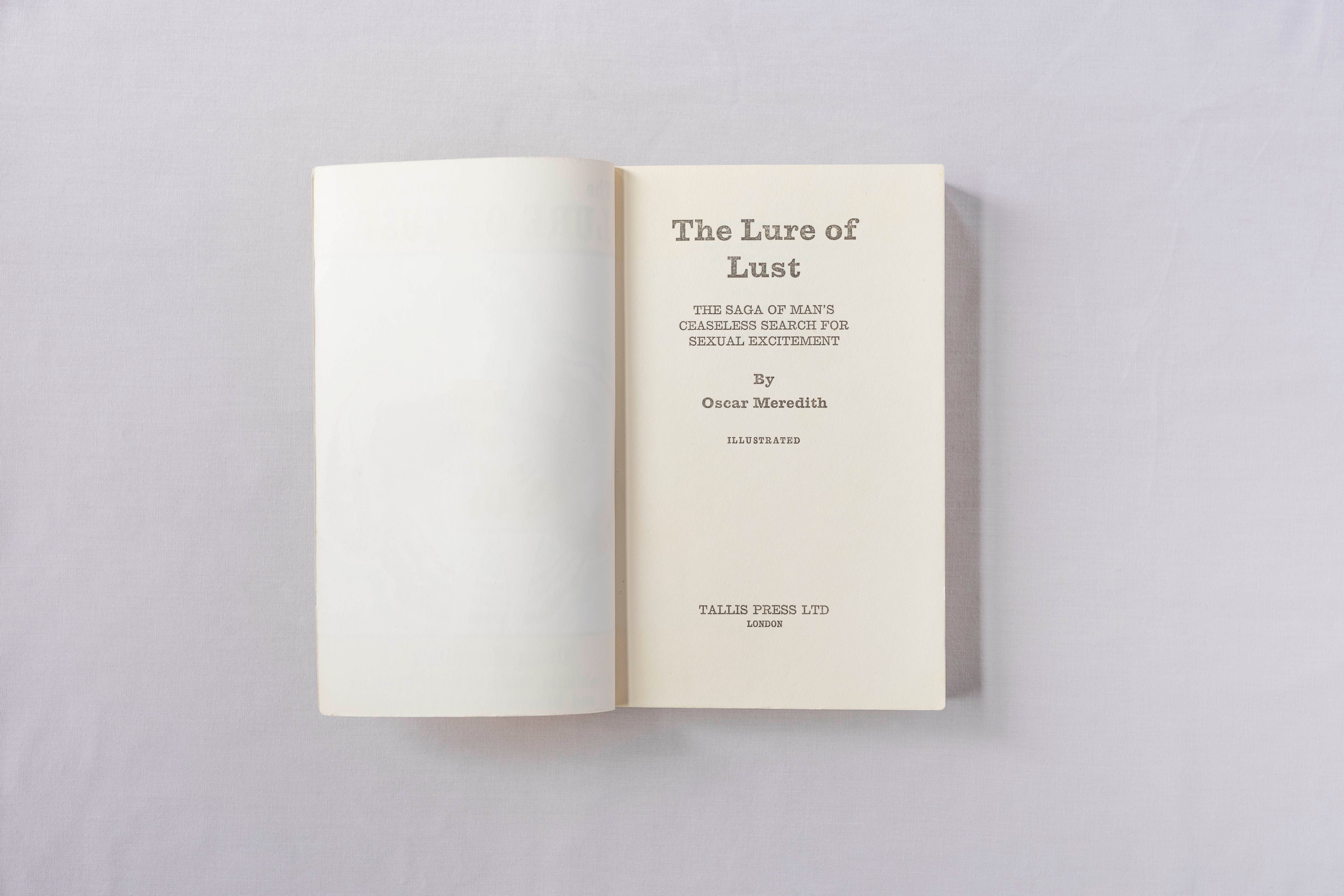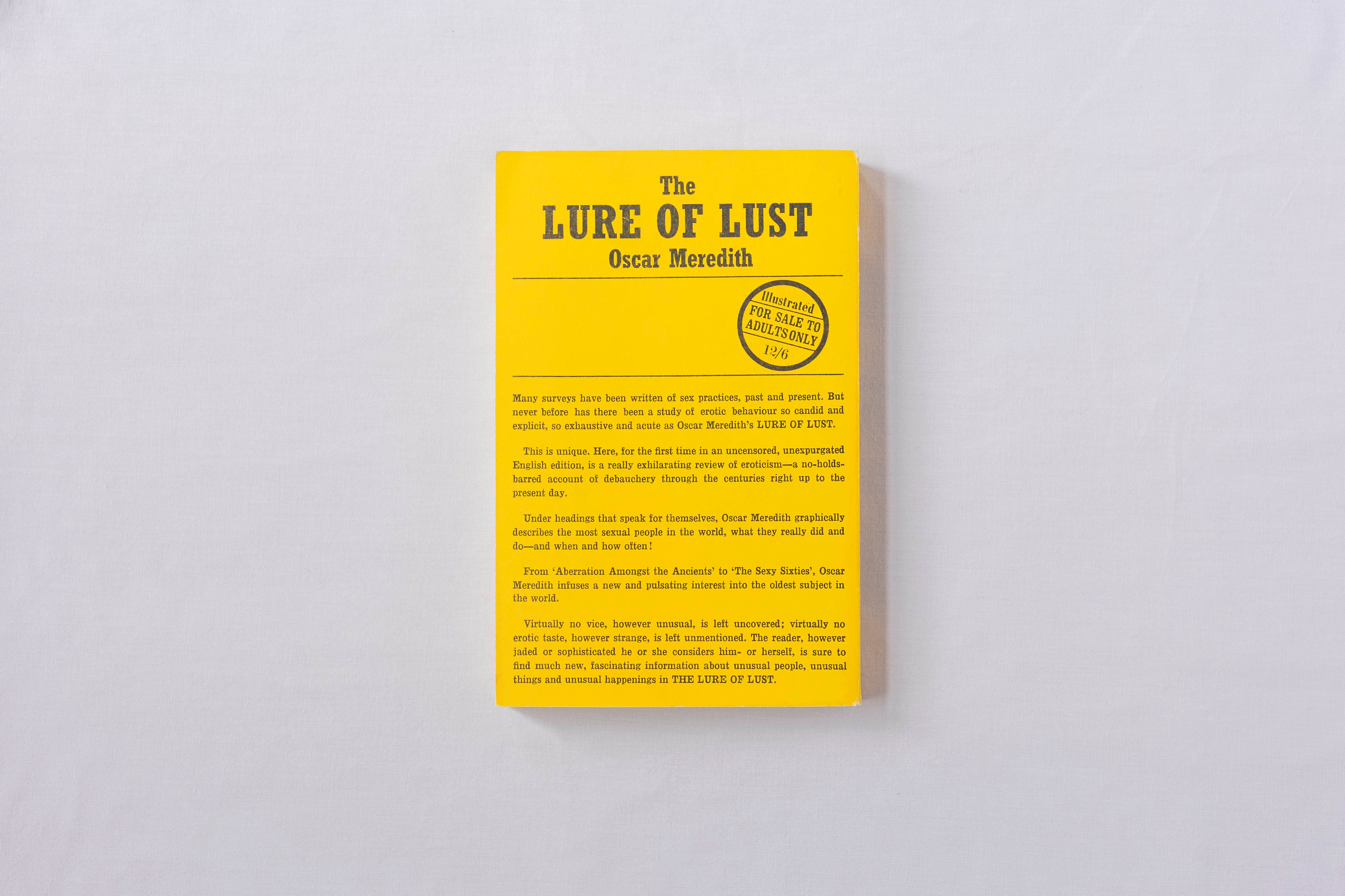Behind its lurid yellow cover, The Lure of Lust — Oscar Meredith’s “uninhibited study of erotic practices and behaviour past and present” — is a pulp paperback dressed up as sexology. The cover promises heat, the pages deliver history, guiding the reader from sex and seduction in the scriptures to vice in the Victorian era. Very much of its time, it belongs to the 1960s fashion for eroticism packaged as scholarship.