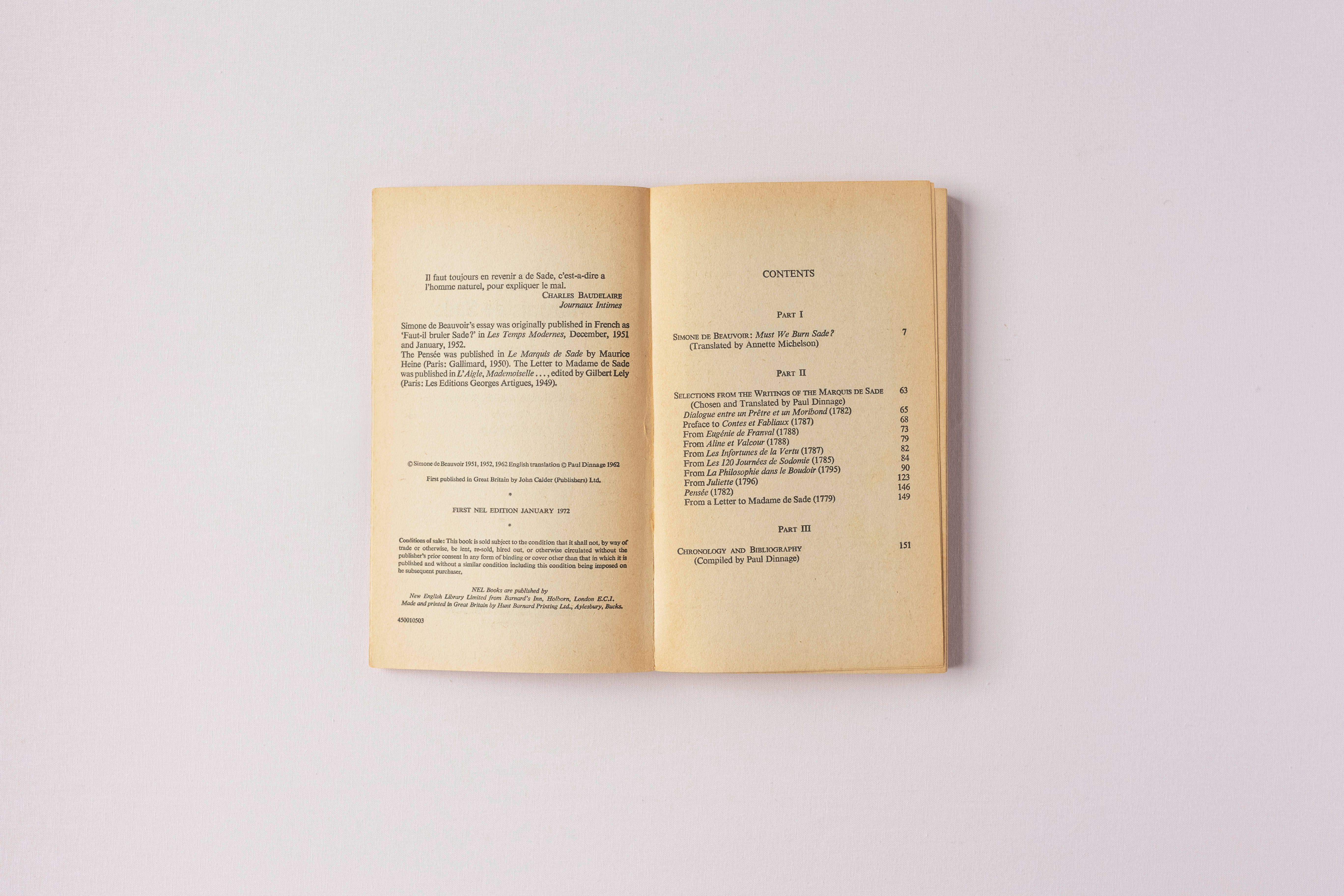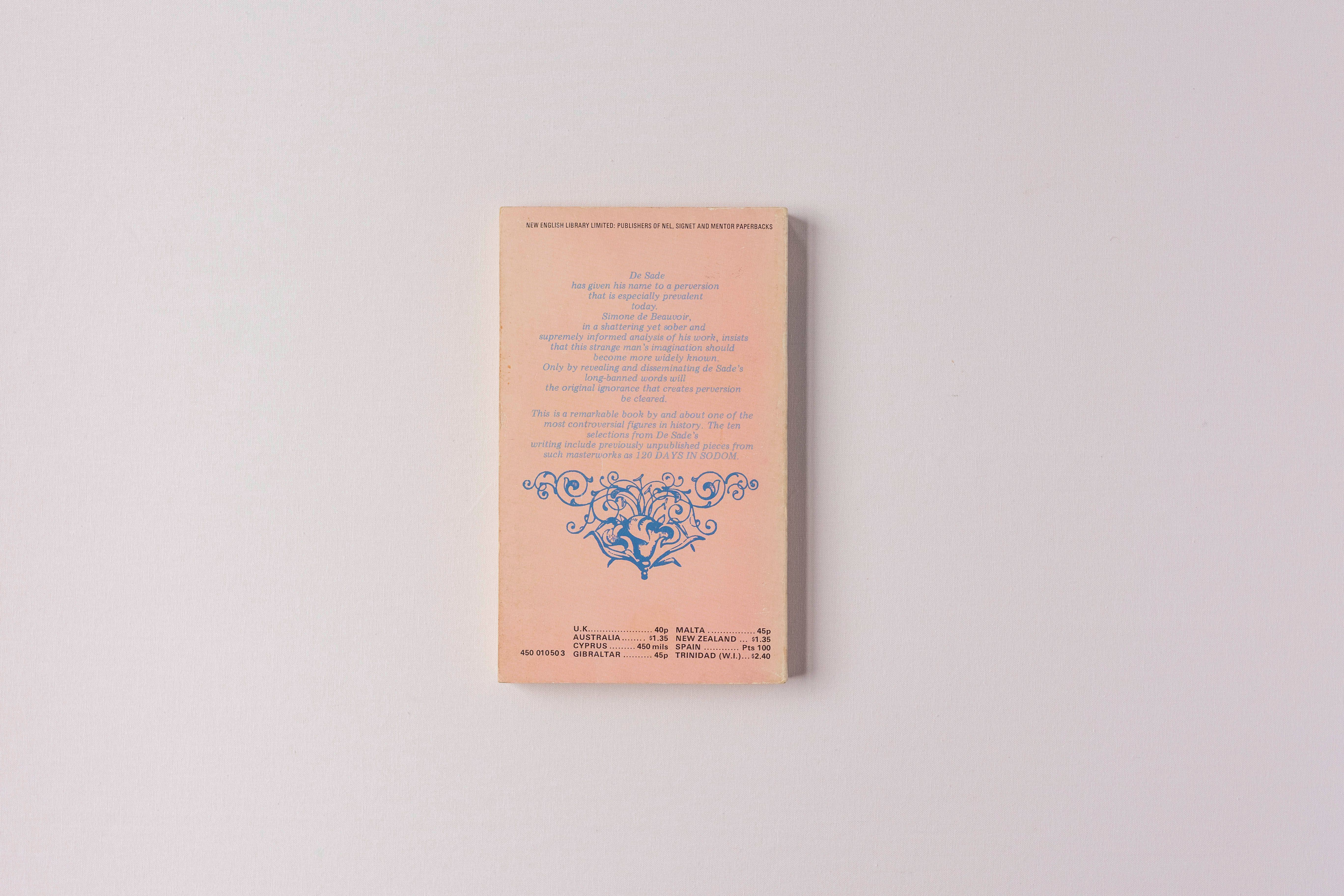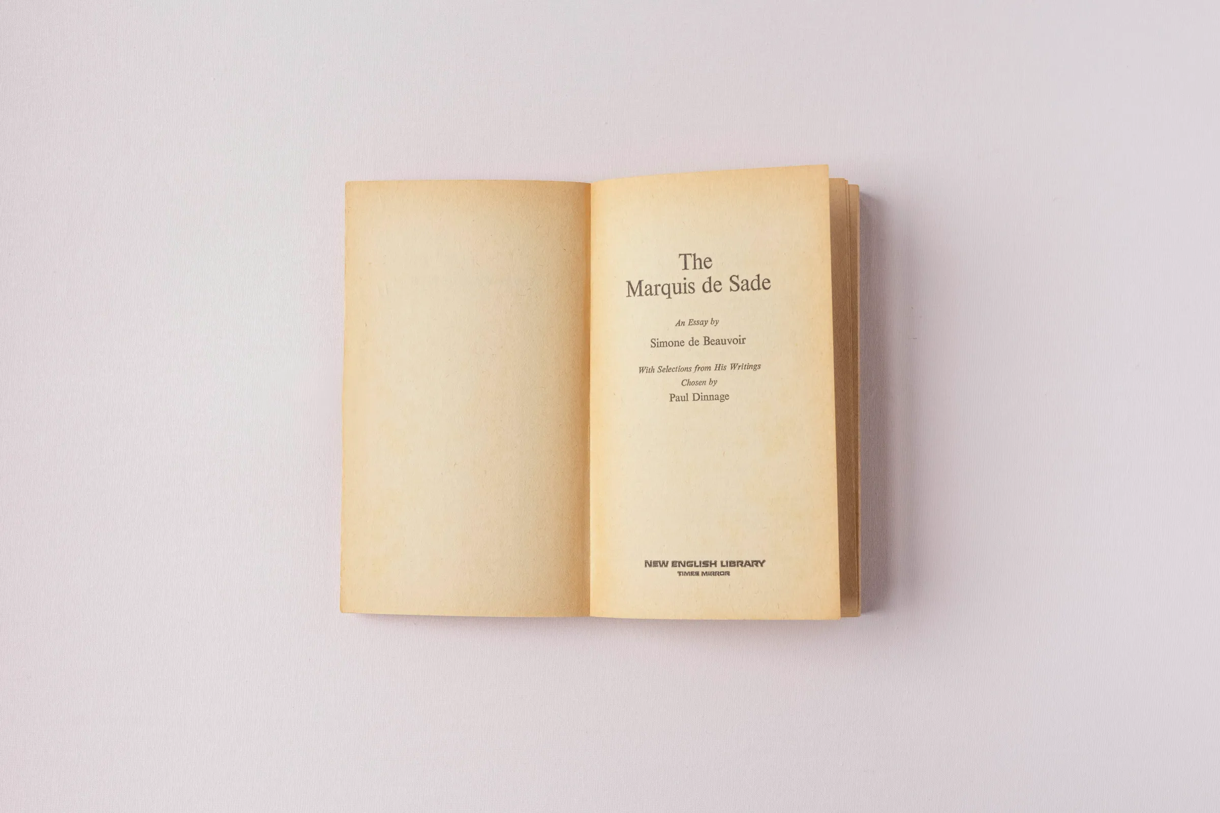 Easily the most covetable edition of Simone de Beauvoir’s The Marquis de Sade – the New English Library’s British First Edition Paperback, complete with shocking pink wrapper with its bold blackletter title. This edition pairs de Beauvoir’s essay ‘Must We Burn Sade?’ with selections from Sade’s writings, chosen and translated by Paul Dinnage.