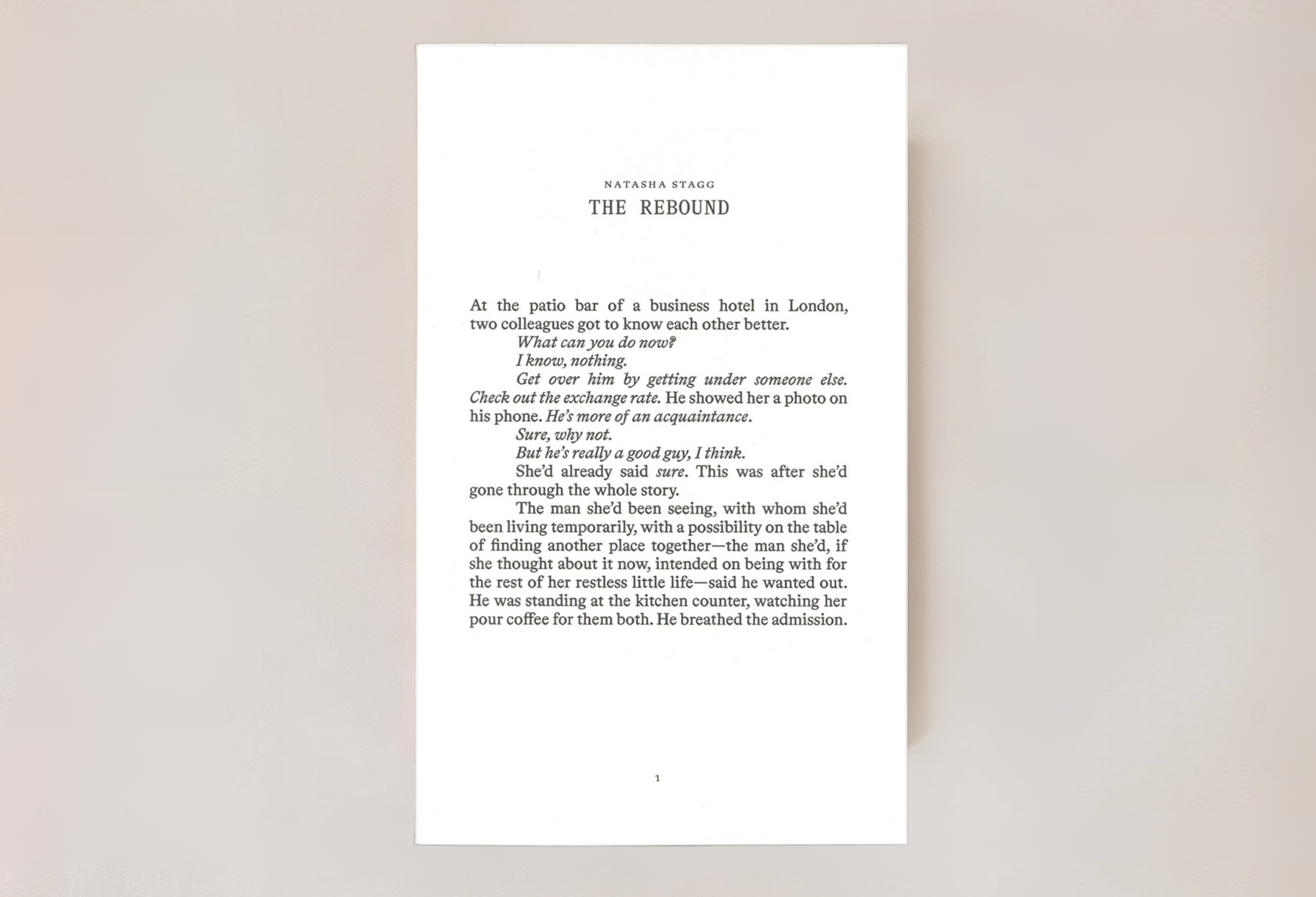 In The Rebound, a short story by author Natasha Stagg (Surveys, Artless), a young woman takes a work trip in the wake of a humiliating break-up, and agrees to be set up on a blind date...
