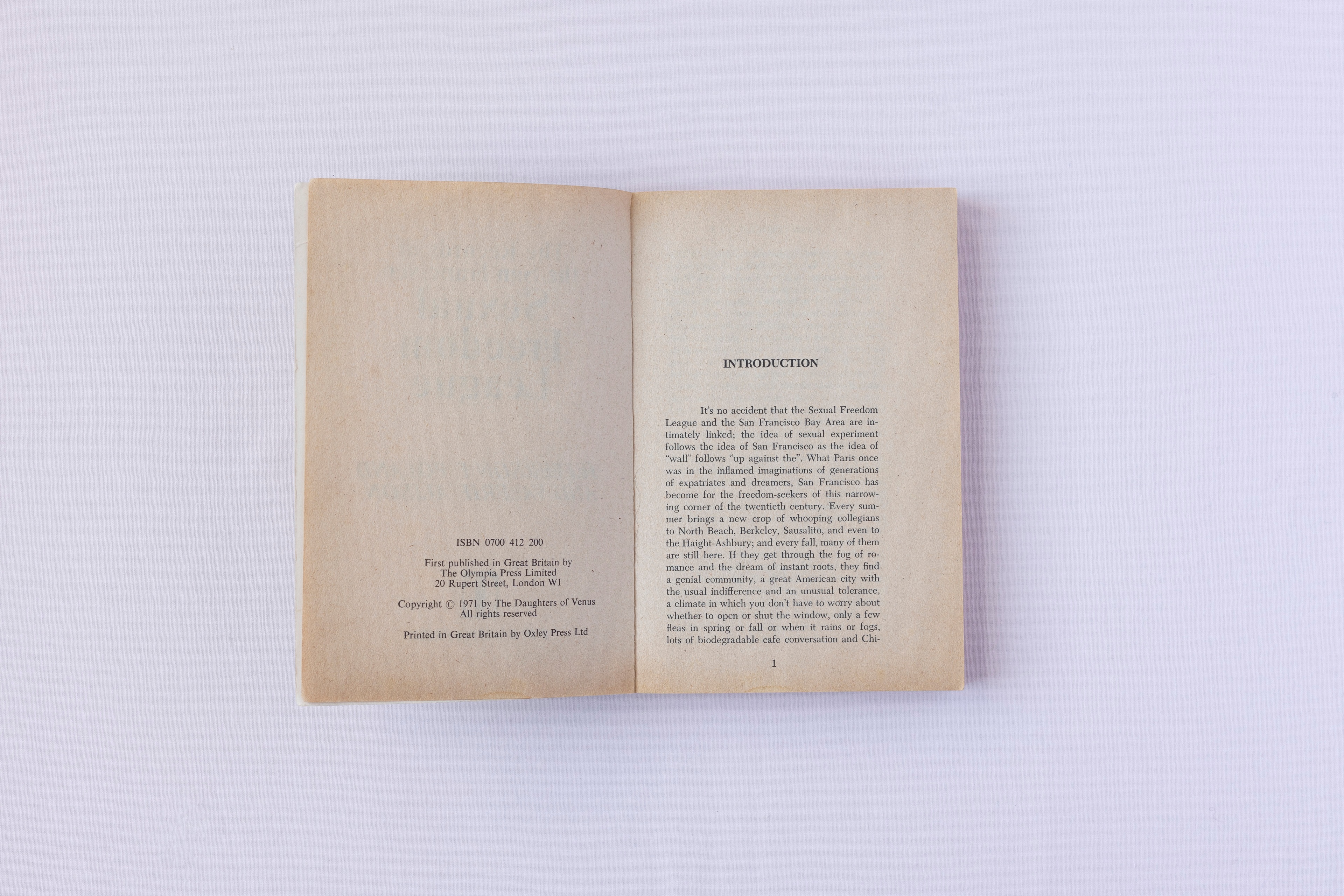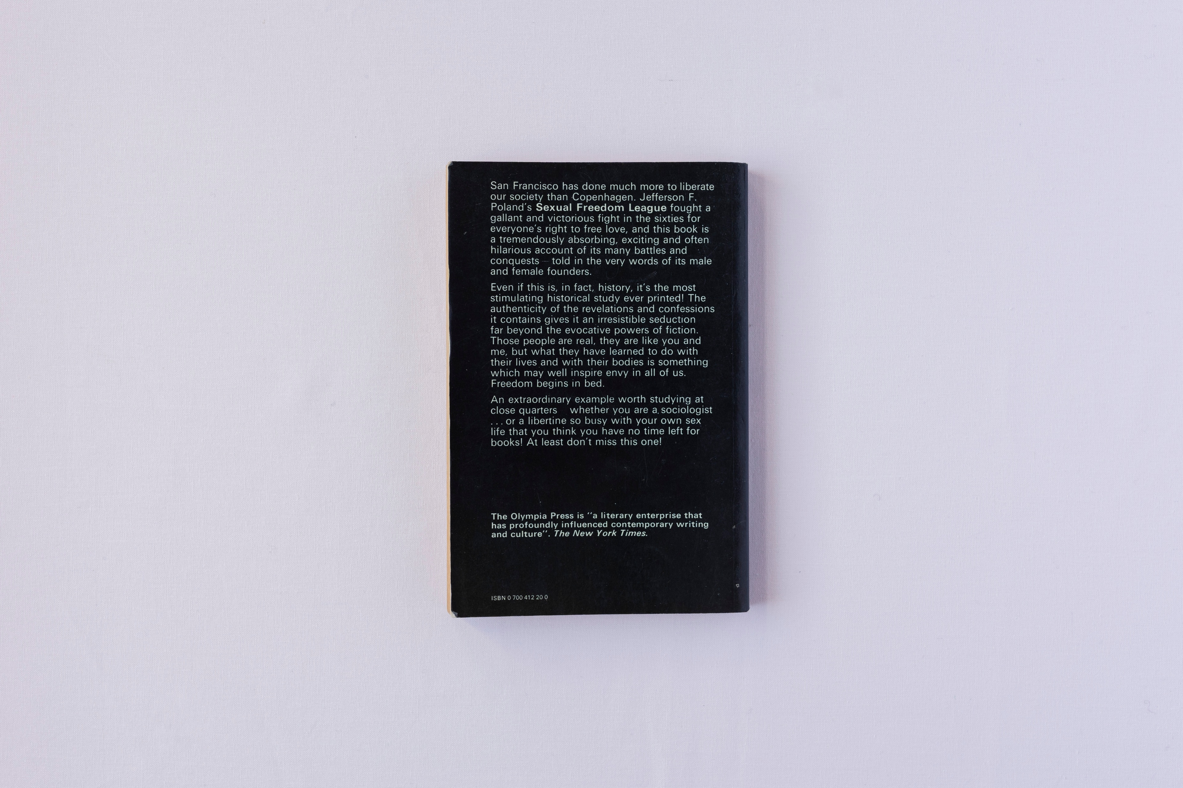Founded by Jefferson Poland and others, the San Francisco Sexual Freedom League combined political activism with an array of nude stunts, from swimming and sit-ins to sex parties. Herbert Gold’s 1971 Olympia Press book presents an oral history of the movement, largely through the voices of women who participated, providing a firsthand account of a freewheeling moment in time.