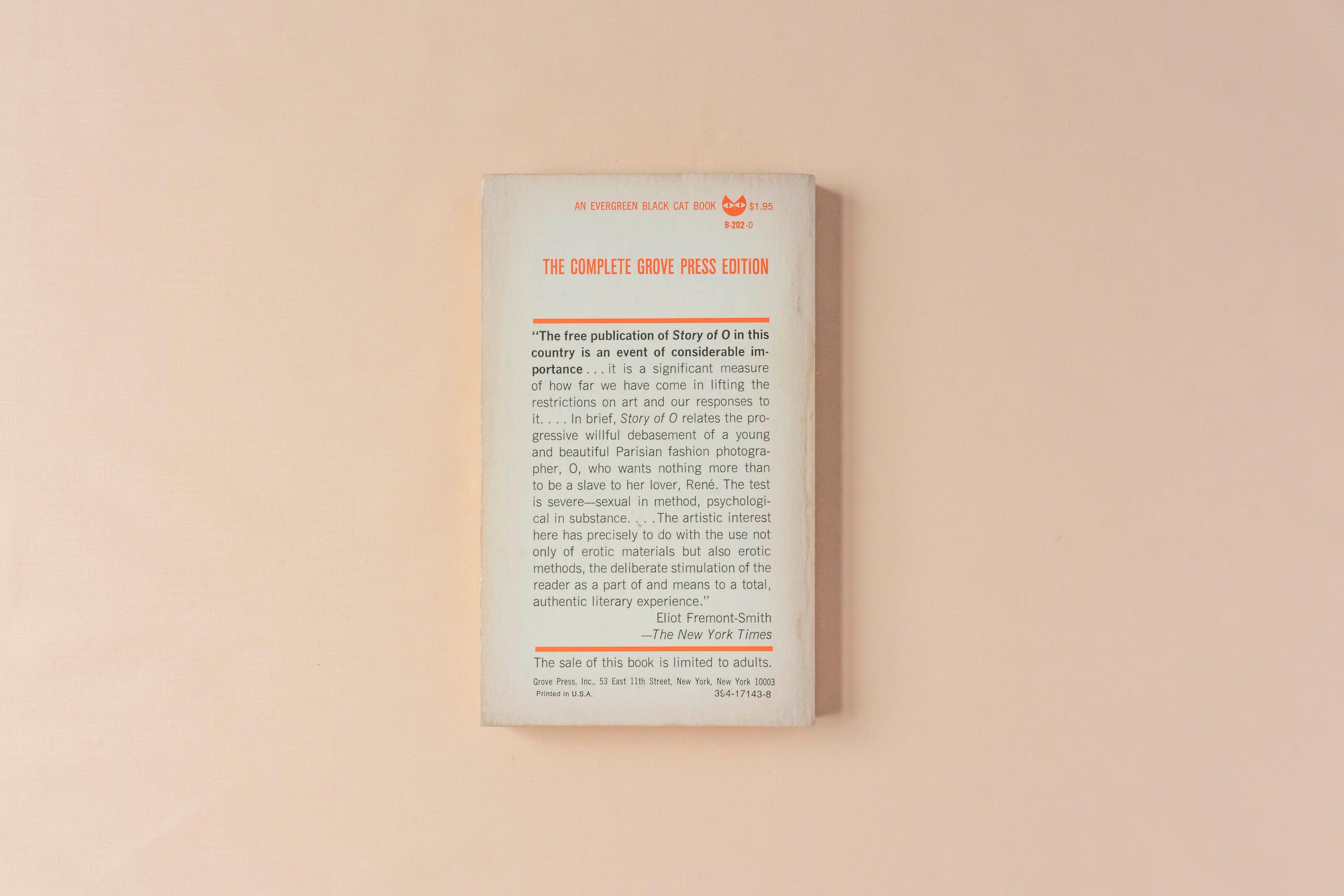 This edition is the Grove Press paperback, splashed with a quote from Eliot Fremont-Smith’s New York Times Review in red. The book also comes with a 1994 newspaper article from The Times on the uncovering of the Story of O author's identity.